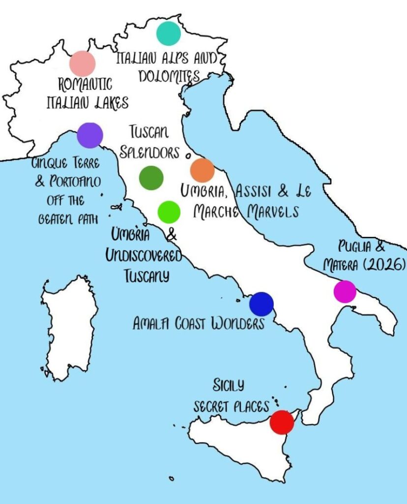 For over two decades we’ve been guiding travelers through Italy’s most beautiful regions — always at a slower pace, always led by Italians, and always in touch with locals: farmers, artisans, chefs, and guides who open their world to you. Gentle walks, farmhouse lunches, dinners in historic town trattorias: this is Italy lived authentically, step by step.