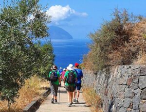 A panoramic hike reveals vistas over the island of Vulcano, through Mediterranean shrubs and villas. In the afternoon, we explore Lipari town and its hilltop castle. Dinner is relaxed and festive: a pizza feast on the main street of Lipari.