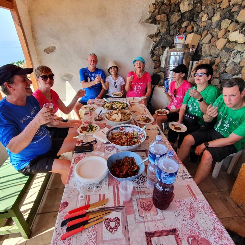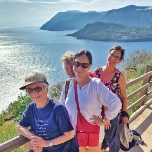 Sicily walking tour was perfect way to see much of the east coast and gorgeous Aolian islands (Lipari and Salina). The walking is always pleasant and not arduous. Each dinner, walk, hotel or experience is carefully chosen by Gianni and his guides. Many just wouldn’t be possible to organise without local expertise. On Lipari we had such a special dinner in a farmhouse overlooking the sea at sunset prepared by a local young chef…..highly recommended small group tour! Almost all of our group had done other walks with Walk About italy…obviously a very good sign!