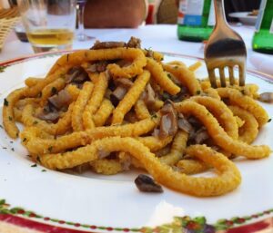 Your first evening begins with one of Umbria’s culinary treasures: truffles. The earthy aroma fills the air as fresh truffles are shaved over handmade pasta or infused into creamy sauces. Paired with a glass of Orvieto Classico white wine, it’s the perfect welcome to the green heart of Italy.